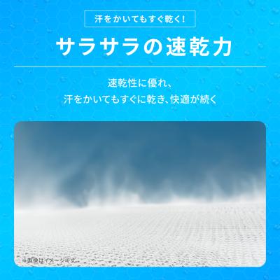 汗で濡れても通気性が持続するドライ素材。