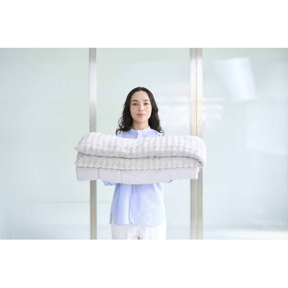 4こだわりのメンテナンス性薄くて軽い*、自宅で洗濯可能。*現行品かけ布団+毛布との重量比較