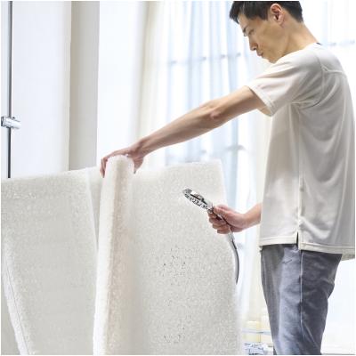 本体はお風呂でシャワーをかけて洗うだけ。ベランダで干すことも可能です。6つ折り構造のため、簡単に持ち運べて、スペースを取りません。