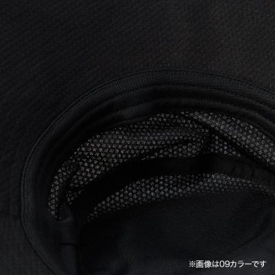 ビン皮部に保水芯地を使用、水に濡らして被ると気化熱を利用してヒンヤリと涼しい。
