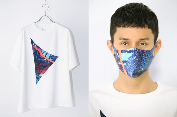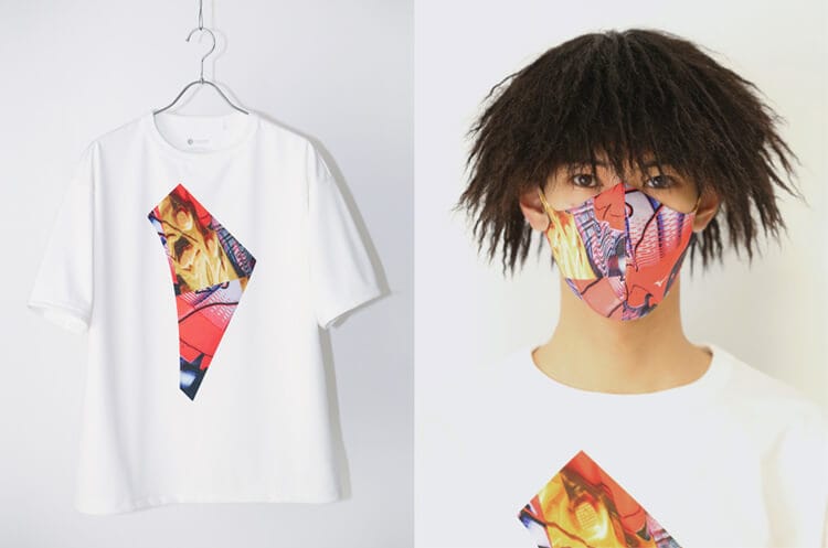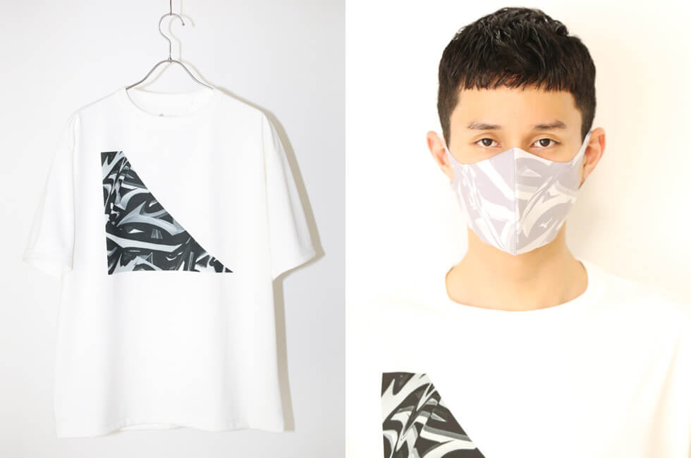 Mizunoの技術の結晶であるシューズ・ウエア・ギアなど様々なアイテムに用いられるマテリアルを、小山氏ならではの手法でビジュアライズしたアートワークを全面にプリントした、飛沫拡散を抑制するマウスカバーは、ストレッチ性に富む快適な着用感が特徴。コラボレーションTシャツと連動したグラフィックのマウスカバーで日常を彩ってみては。