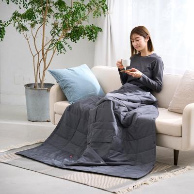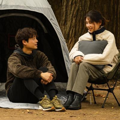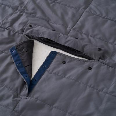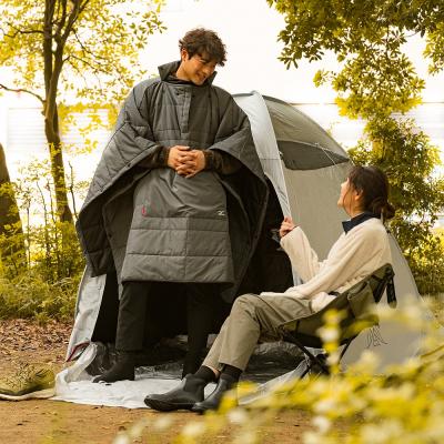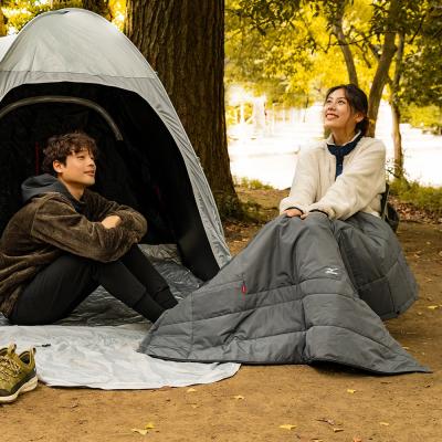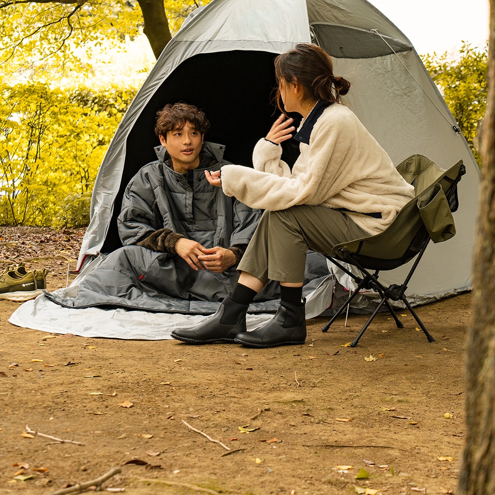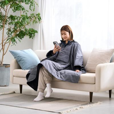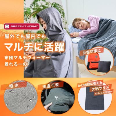 ブレスサーモ掛け布団がポンチョとして着れて腰まで温か。表生地は撥水加工付きで、また洗濯可能なので外でも中でも使いやすいアイテムです。コンパクトにクッション型に収納もできて持ち運びしやすいので、緊急の災害時などに防災グッズとしても使えて便利です。