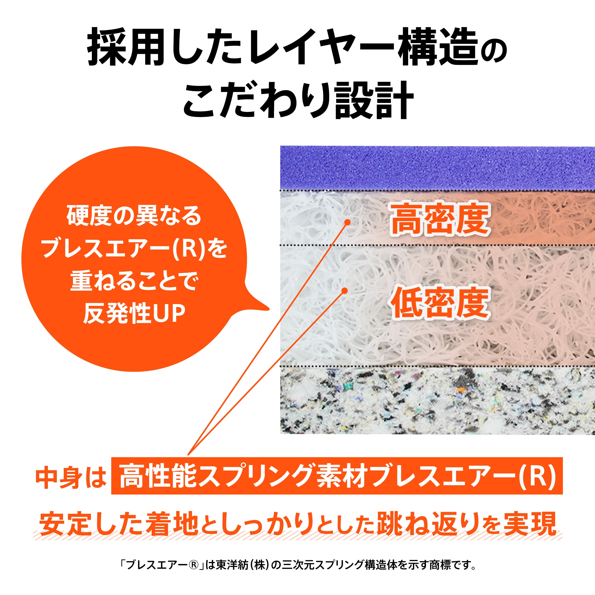■高い反発性と通気性のブレスエアー(R)を採用したレイヤー構造のこだわり設計。