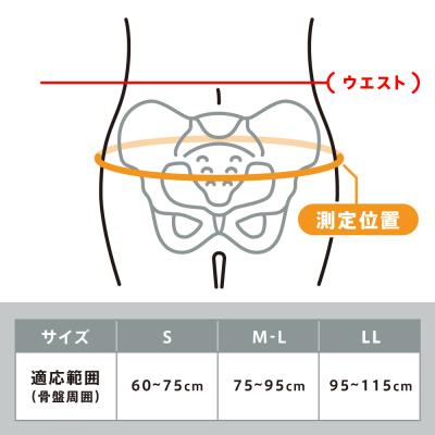 | サイズ | 【骨盤周囲】 S:60~75cm【背幅】S:約5.4cm 【骨盤周囲】 M-L:75~95cm【背幅】M-L:約5.4cm 【骨盤周囲】 LL:95~115cm【背幅】LL:約5.4cm |
