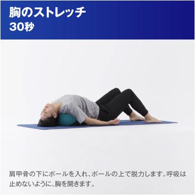 肩甲骨の下にボールを入れ、ボールの上で脱力します。