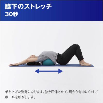 脇下にボールを入れ、ボールに横向きにもたれかかります。