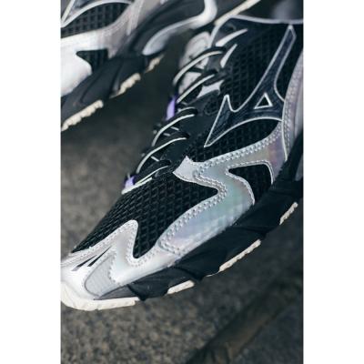 WAVE PROPHECY LS、WAVE RIDER 10、MXR をフィーチャーしたこのパックは、イノベーション、美学、そして改革を表現しています。光沢のある黒とシルバーのメタリック素材と、パール素材、ダイヤモンド(菱形の)メッシュ、反射素材と融合し、アクセントとしてパープルカラーを使用しています。