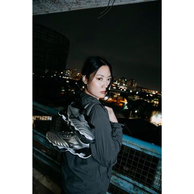 新色のシルバーは、立体的なWAVE PROPHECYソールと呼応し、シャープで未来的な表情を生みだし、テック・モード・ストリートと、多様なスタイルに調和しながら、未来感と品格を共存させる存在感を放っている。また、全体を引き締め、品格と力強さを両立するブラックのアクセントは、シルバーの光を際立たせながらも、スタイリングに奥行きをもたらしている。