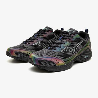 東京の夏の夜。街の灯りが雨粒に反射し、車のテールライトが軌跡を描き、アスファルトには無数のレイヤーが重なる。「MIDNIGHT VELOCITY PACK」 は、そんな都市の夜が持つ “移ろい続けるスピード感” を足元に落とし込んだ、ミズノスポーツスタイルのスペシャルカラーパックである。キーとなるのは、光の角度によって色が変化する素材 「LENTICULAR(レンチキュラー)」で、夜の都市が持つ “多層的な奥行き”、”スピード”、”反射のグラデーション” そのすべてを一足の中に閉じ込めている。