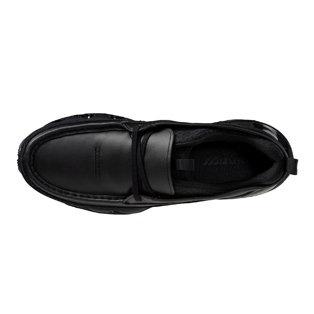アッパーには、上質さとエイジングを両立するスムース仕様の天然皮革を採用し、履き込むごとに表情を深めていく。足を包み込むインナー構造には 「SKY MEDAL」 の設計思想を落とし込み、デザイン性を損なうことなく、確かなフィット感と快適性を実現している。一方で、シューレースをアップデート。ブラックのスクエア型シューレースをメインに、レースストッパー型リフレクティブレースを付属。無骨さと都会的なムードがさらに際立つ仕様に。