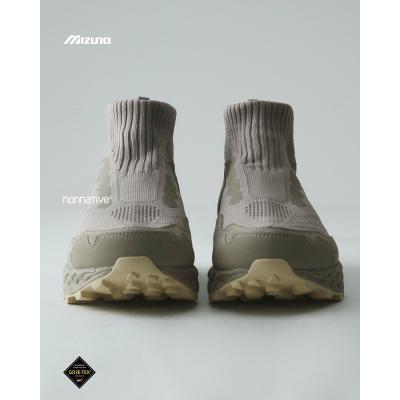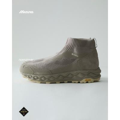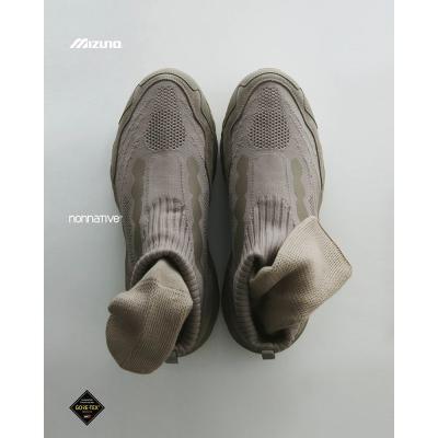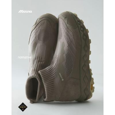 ノーソーデザインがアイコニックなアッパーは、ニット、天然皮革、GORE‑TEX®ファブリクスの異素材で構成。前作 「WAVE MUJIN TL MID GTX nonnative」 の特徴を継承しつつ、ベースとなったトレイルランニングモデル 「WAVE MUJIN 10」 の素材配置を再解釈したデザインとなっている。細部に至るまで妥協のない進化を追求しつつ、カラーリングは原点である “VINTAGE KHAKI” を踏襲。プロダクトとしての完成度を追求してきた、本コラボレーションシリーズのレガシーを体現する外観に仕上げている。