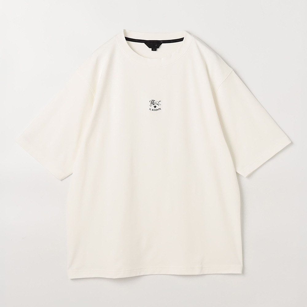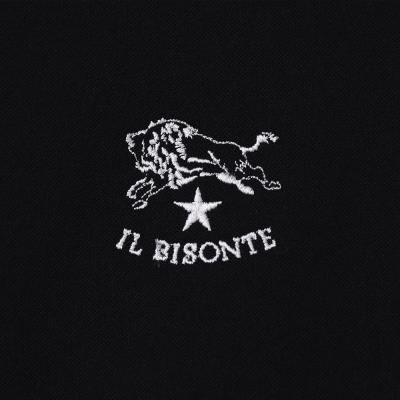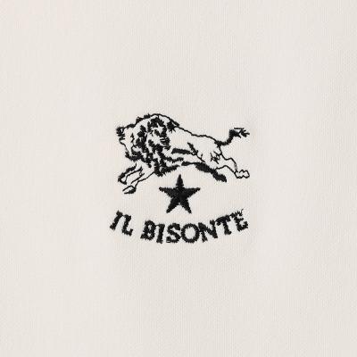 胸中央にはIL BISONTE バイソンロゴ刺繍、背面肩に本体同色のランバードマークの刺繍入り。