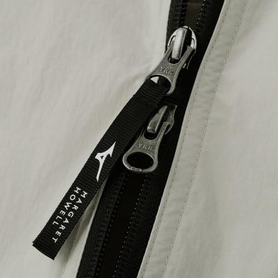 逆開仕様のファスナーを使用し、下側のスファスナーを開けたり、裾のスピンドルを絞って動きをもたせたスタイリングが可能。