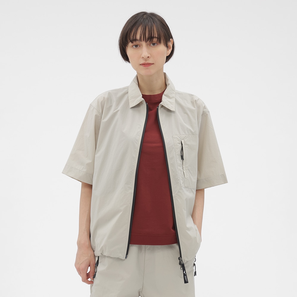 リサイクルタスランナイロンを用いた、軽量でドライな風合いのポプリン素材のショートスリーブシャツ。