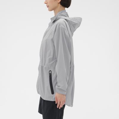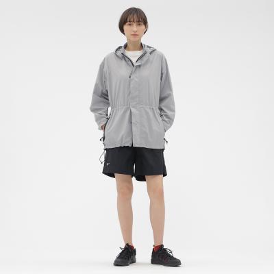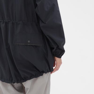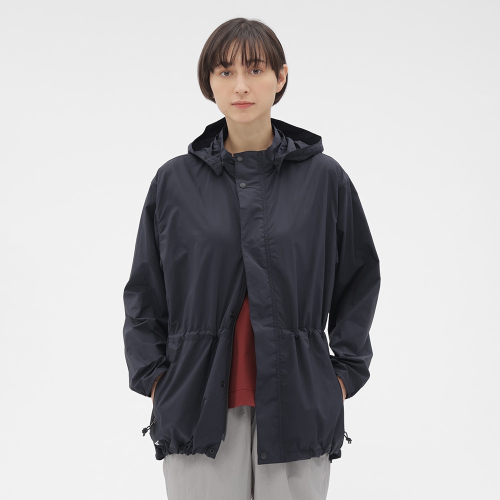 サイクリングジャケットをベースに、後ろ丈をわずかに長くしたバランスが特徴的。ウエストとフードに通したスピンドルで、フィット感の調整が可能。