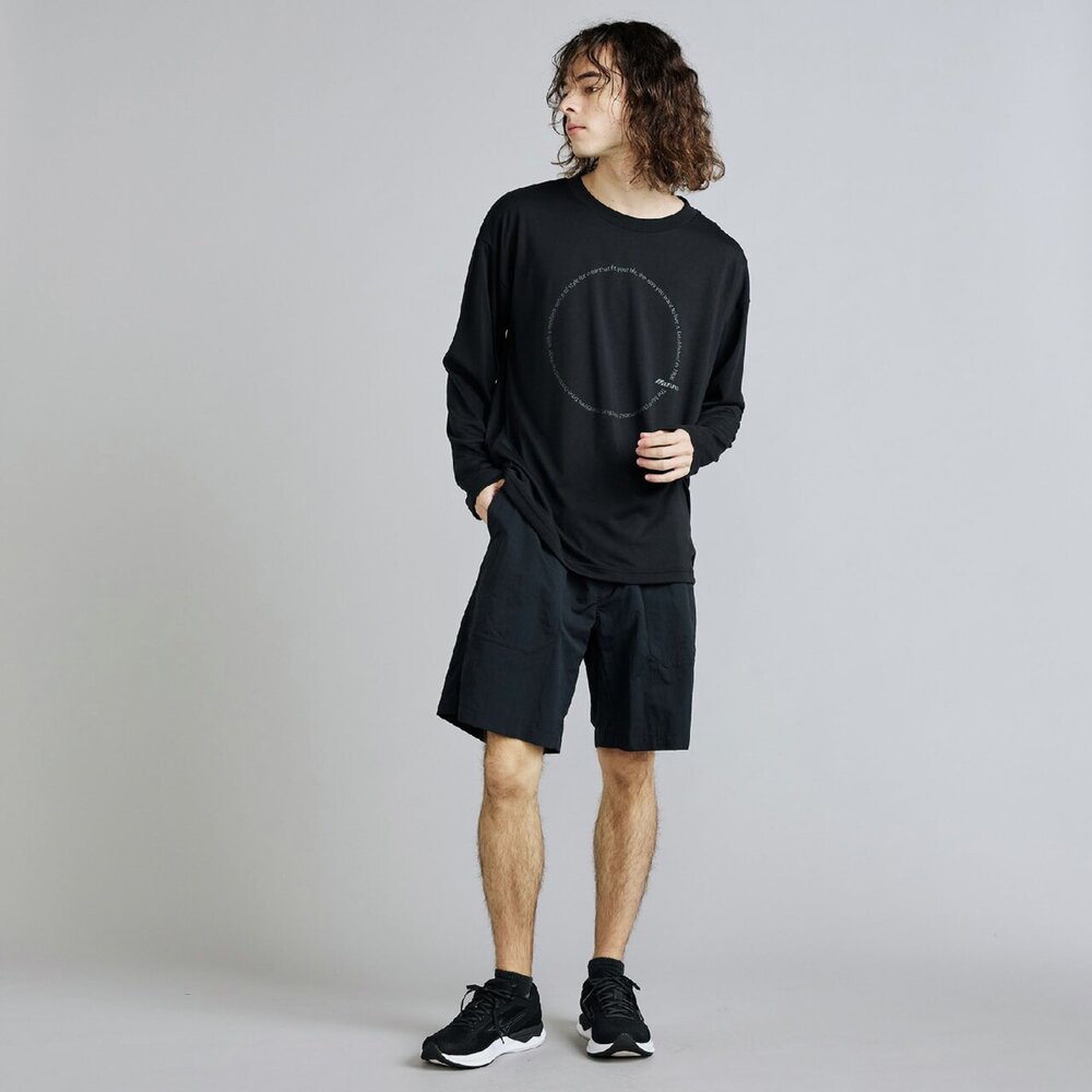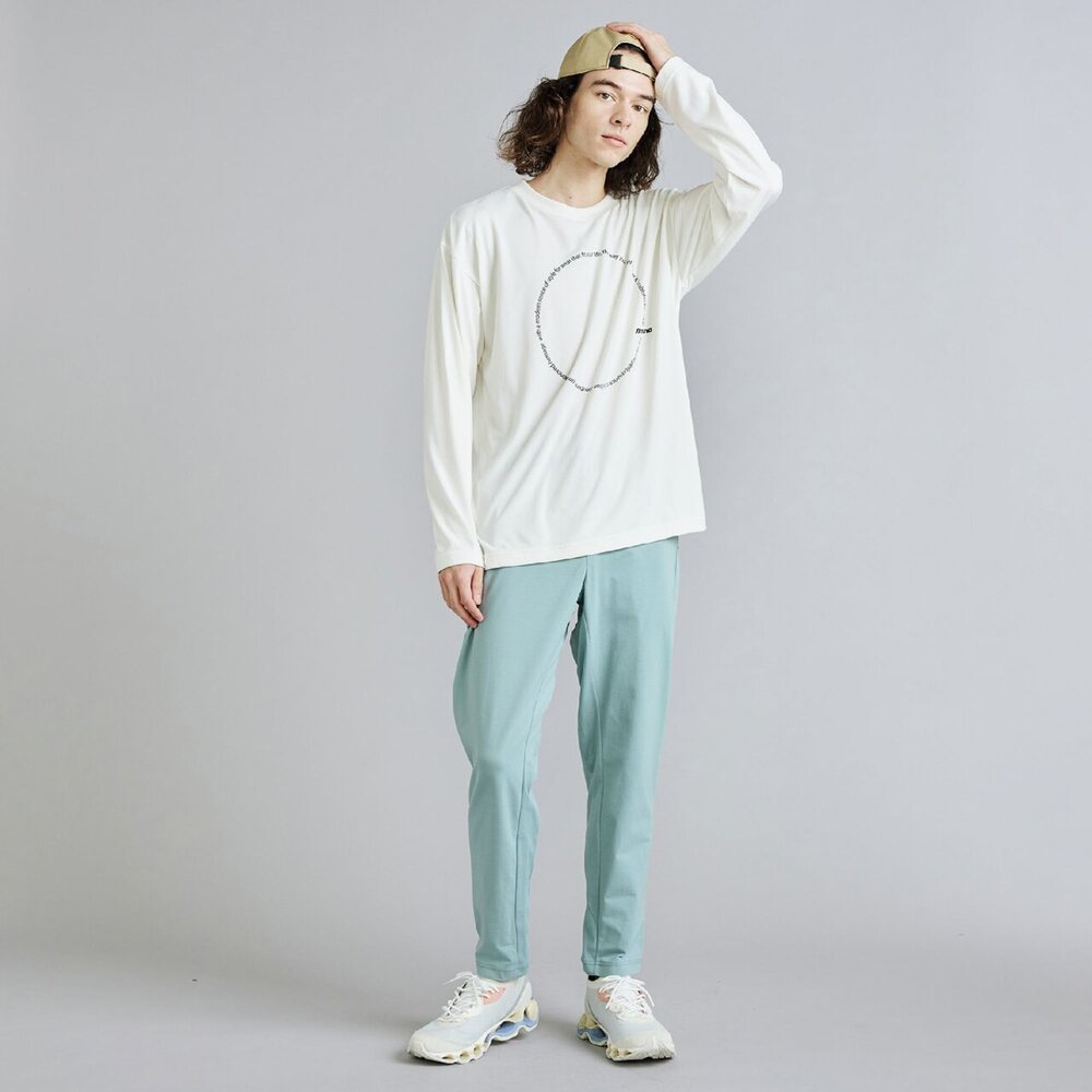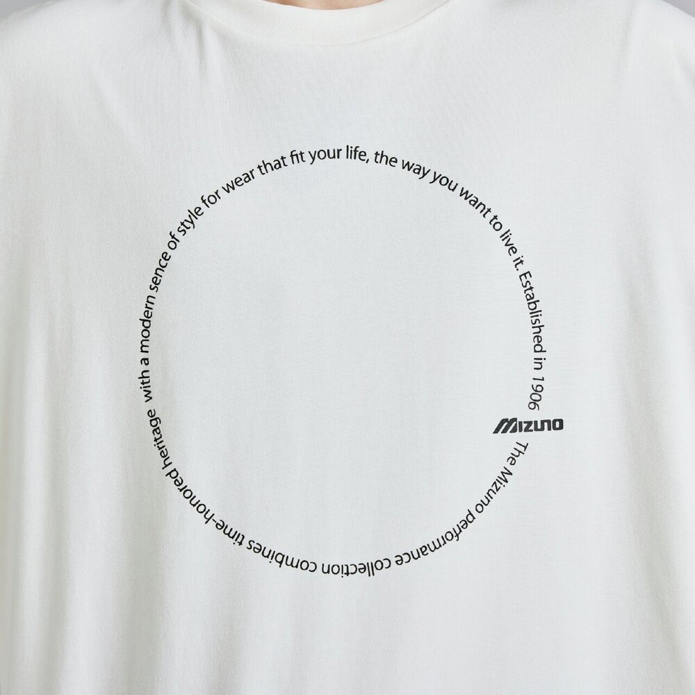 ■サークル状に描いたスポーツスタイルのコンセプトワードとMIZUNOロゴのクールなデザインはスポーツスタイルコーデに活躍。