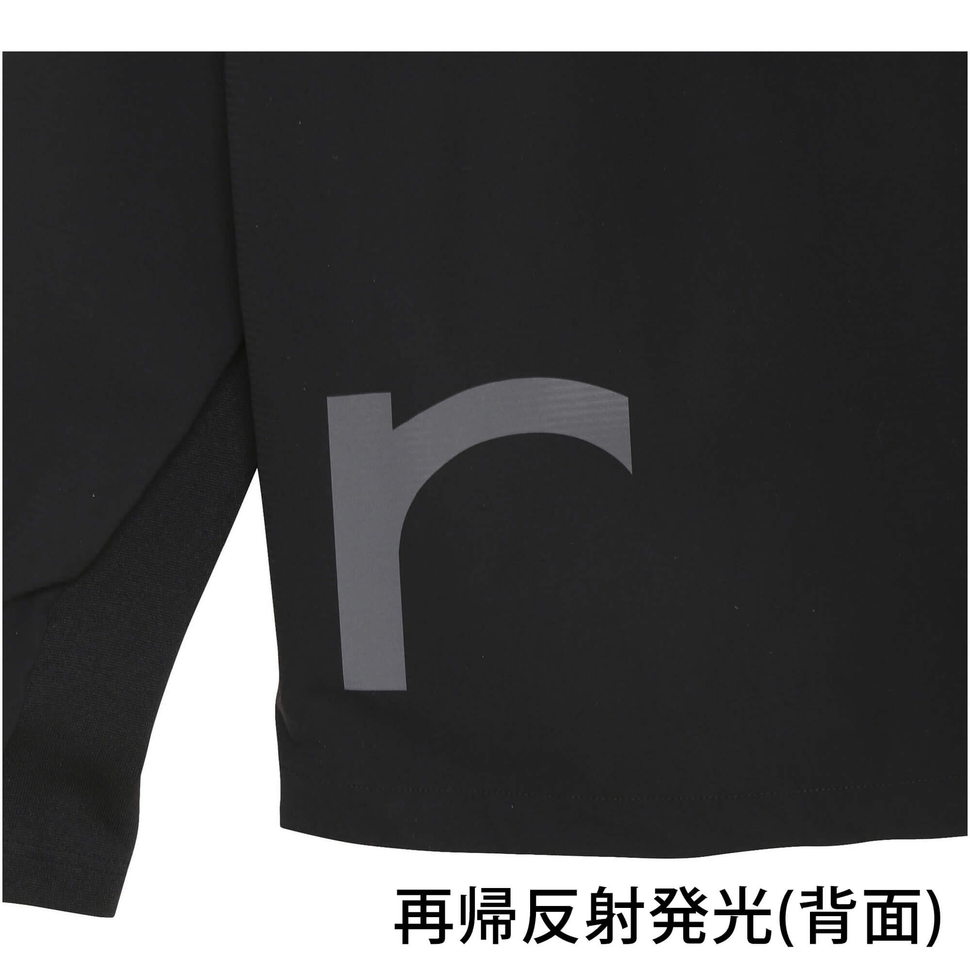 ■大き目のrhrnロゴは日中は同色でコーディネートし易い配色。夜になるとリフレクターになるので、夜道も安心。