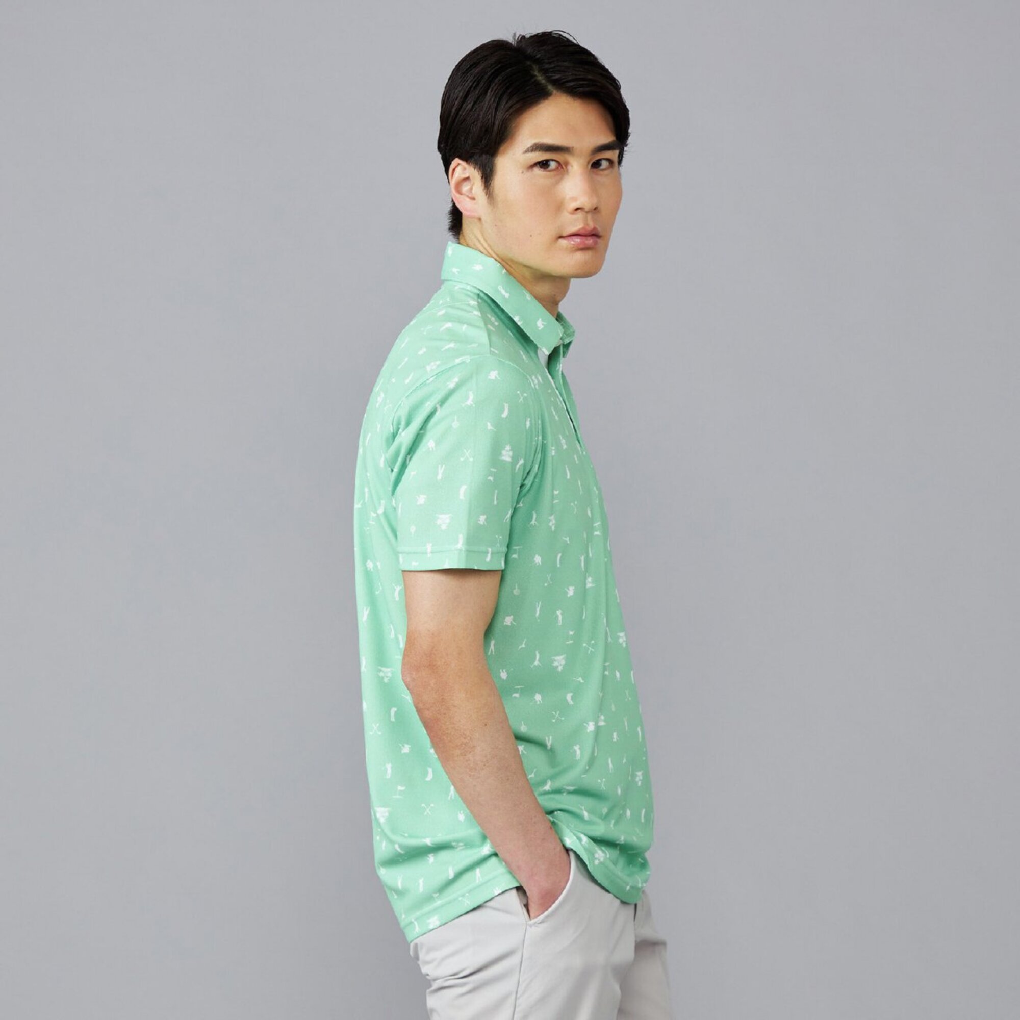 ゴルフに由来したイラストの飛び柄プリントがかわいらしい印象の1枚です。