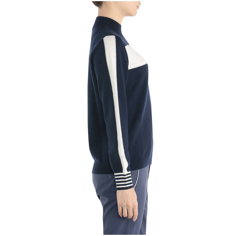 ■優れた発熱保温性の紡績糸であるブレスサーモを使用し温かさと伸縮性に優れたニットセーターに仕上がっています。
