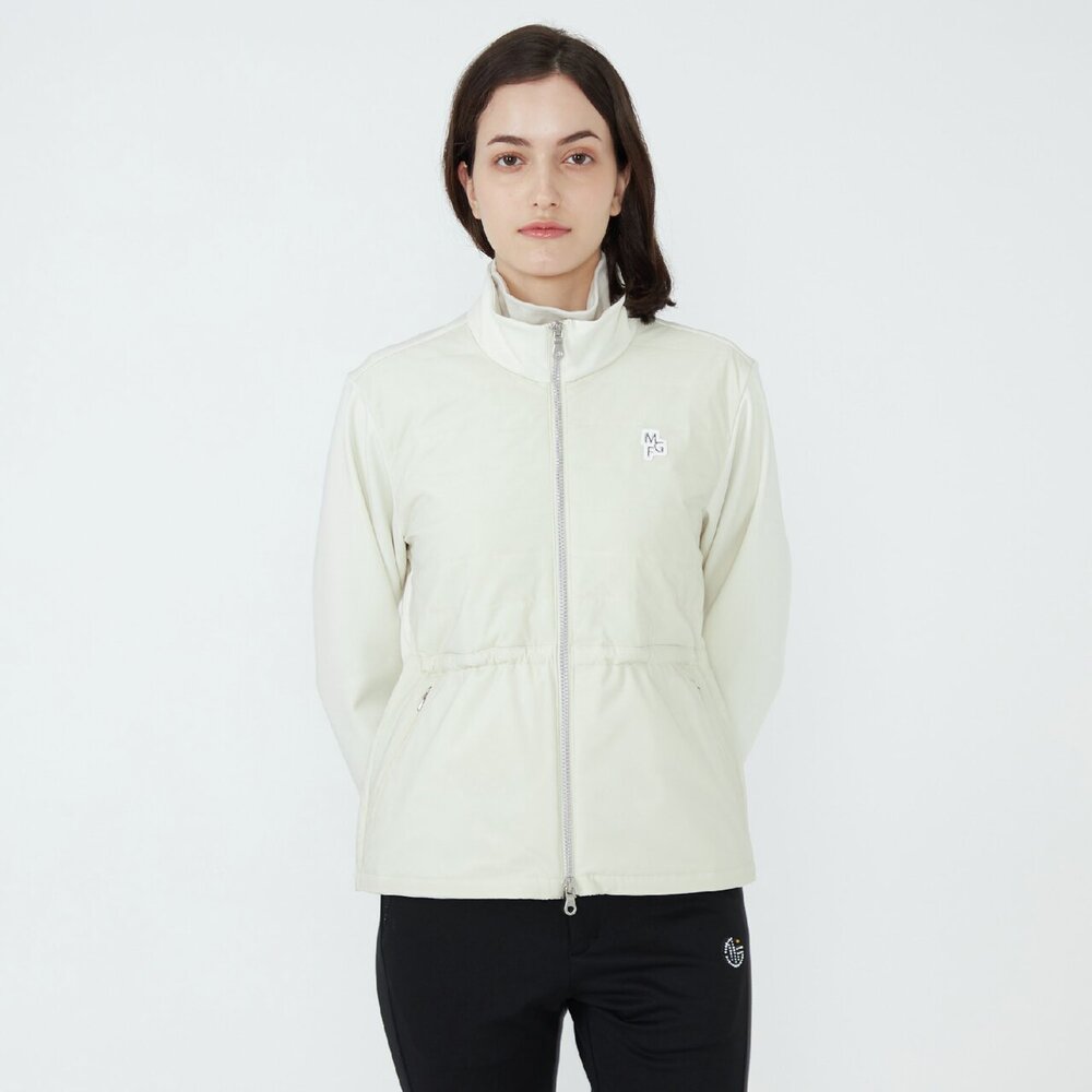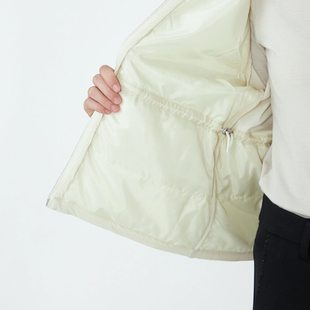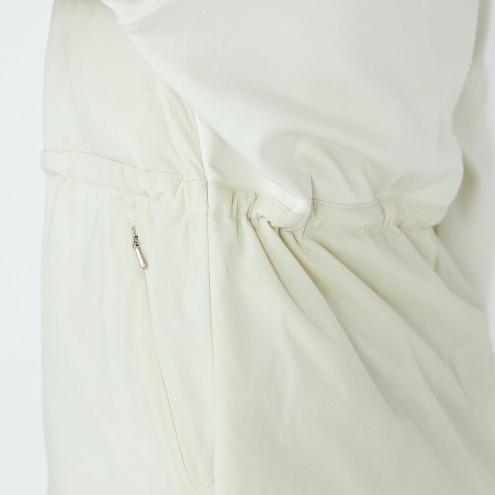 | 素材 | 前身頃・後身頃下部、表地:ナイロン90%、ポリウレタン10% 裏地:ポリエステル100% 中綿:ポリエステル100% ニット部:ポリエステル93%、ポリウレタン7% |