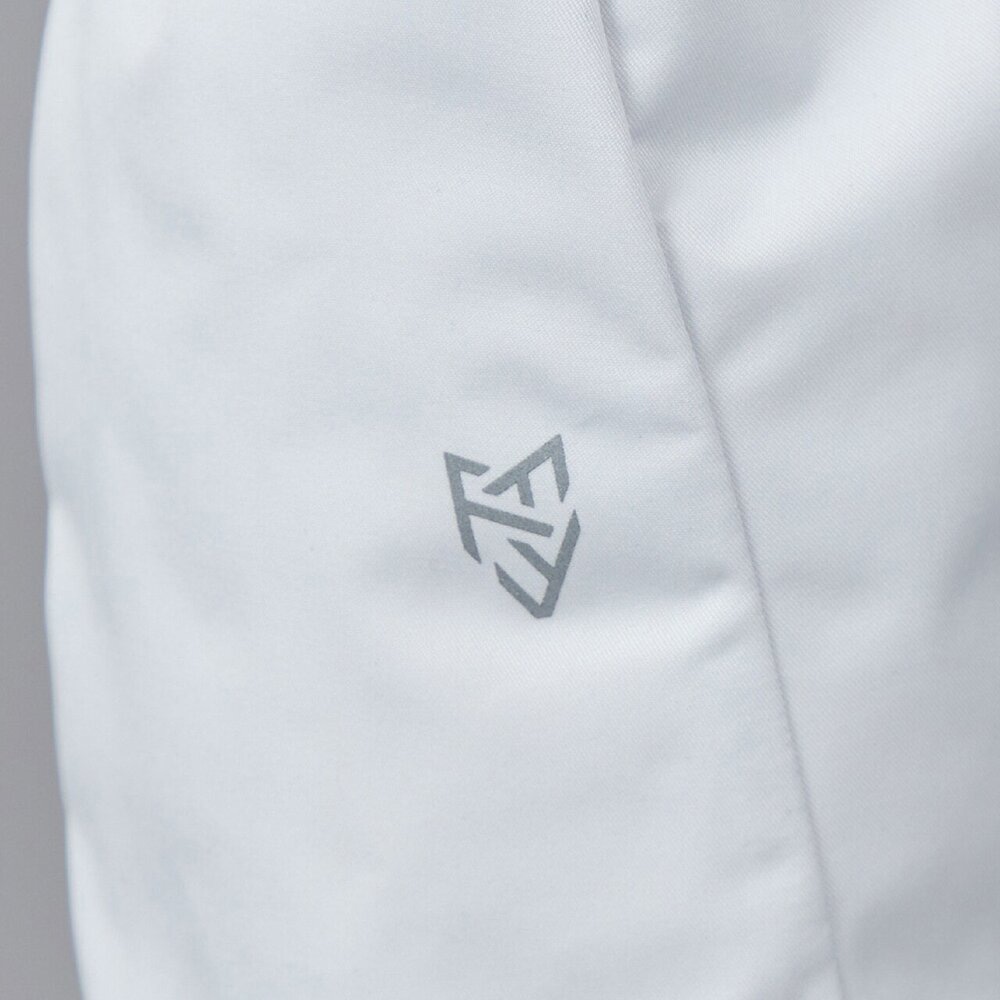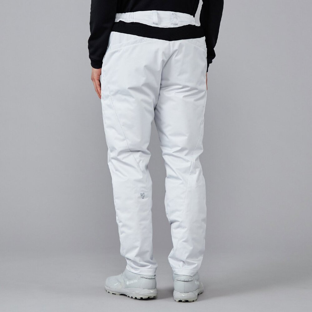 | 素材 | 表地 本体:ポリエステル100%(裏面ポリウレタンフィルムラミネート) 腰切替:ポリエステル100% 裏地 本体:ポリエステル100% 前身上部、後身裾切替:ナイロン100% 膝切替部:ポリエステル51%、複合繊維(ポリエステル/ポリエステル)49% ボア部:ポリエステル95%、レーヨン5% 股マチ部:ナイロン88%、ポリウレタン12% 中綿 前身上部、後身裾切替:ダウン90%、フェザー10% 後身上部:ポリエステル83%、合成繊維(ブレスサーモ)17% 裾カフス:ナイロン88%、ポリウレタン12% |