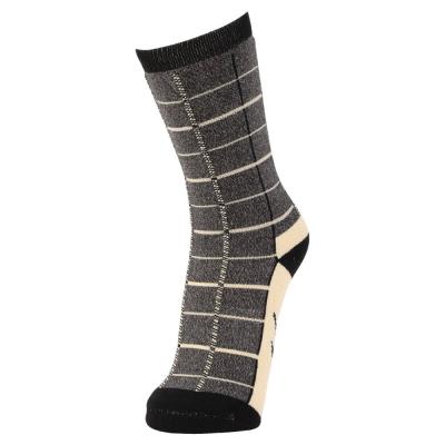 メランジツイードの総柄、でコーディネートのポイントになるミドル丈ソックス。