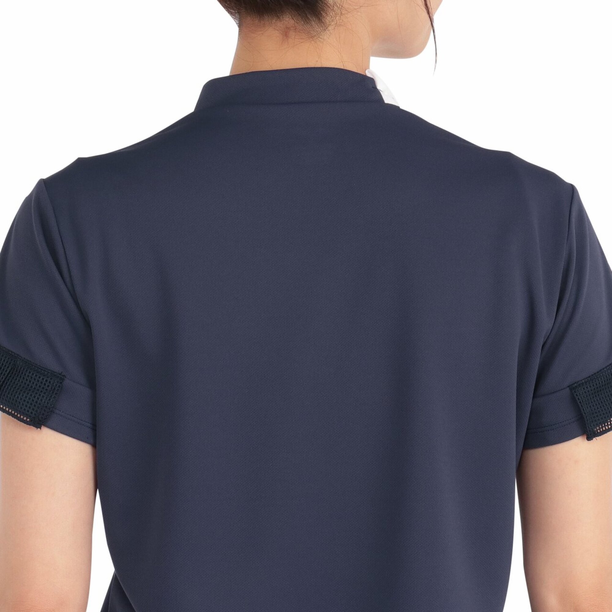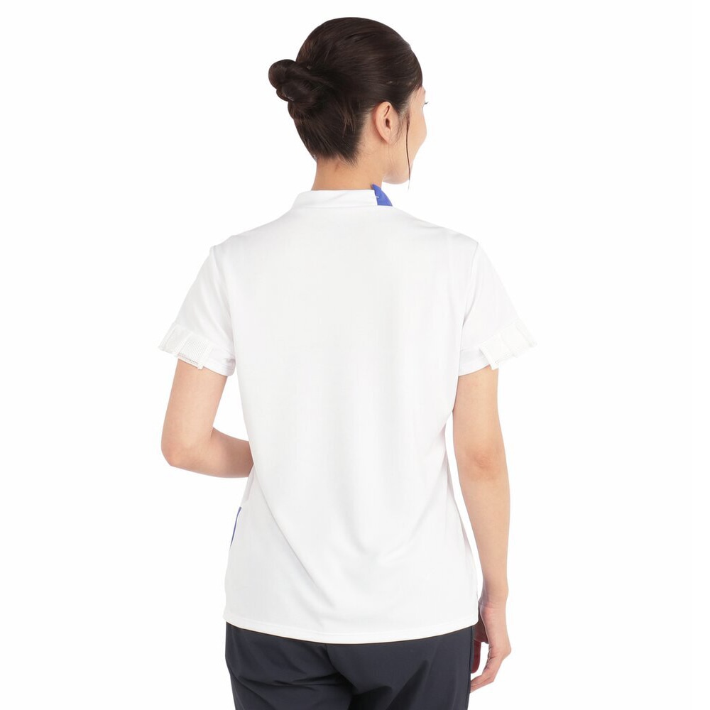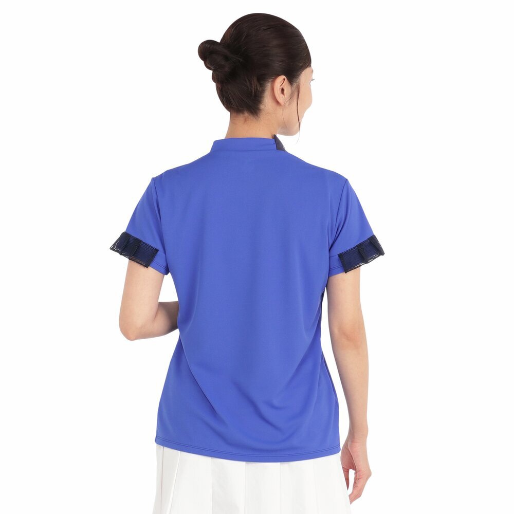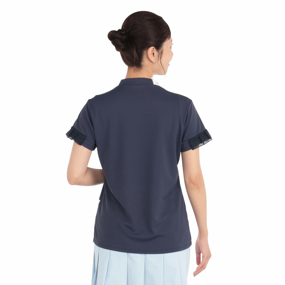 スポーティな配色と袖のメッシュプリーツが爽やかなデザインでゴルフ、テニスなどのスポーツを華やかに演出します。