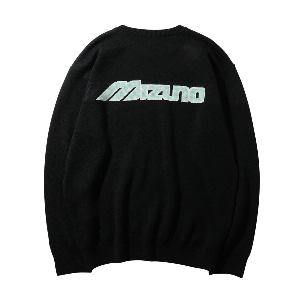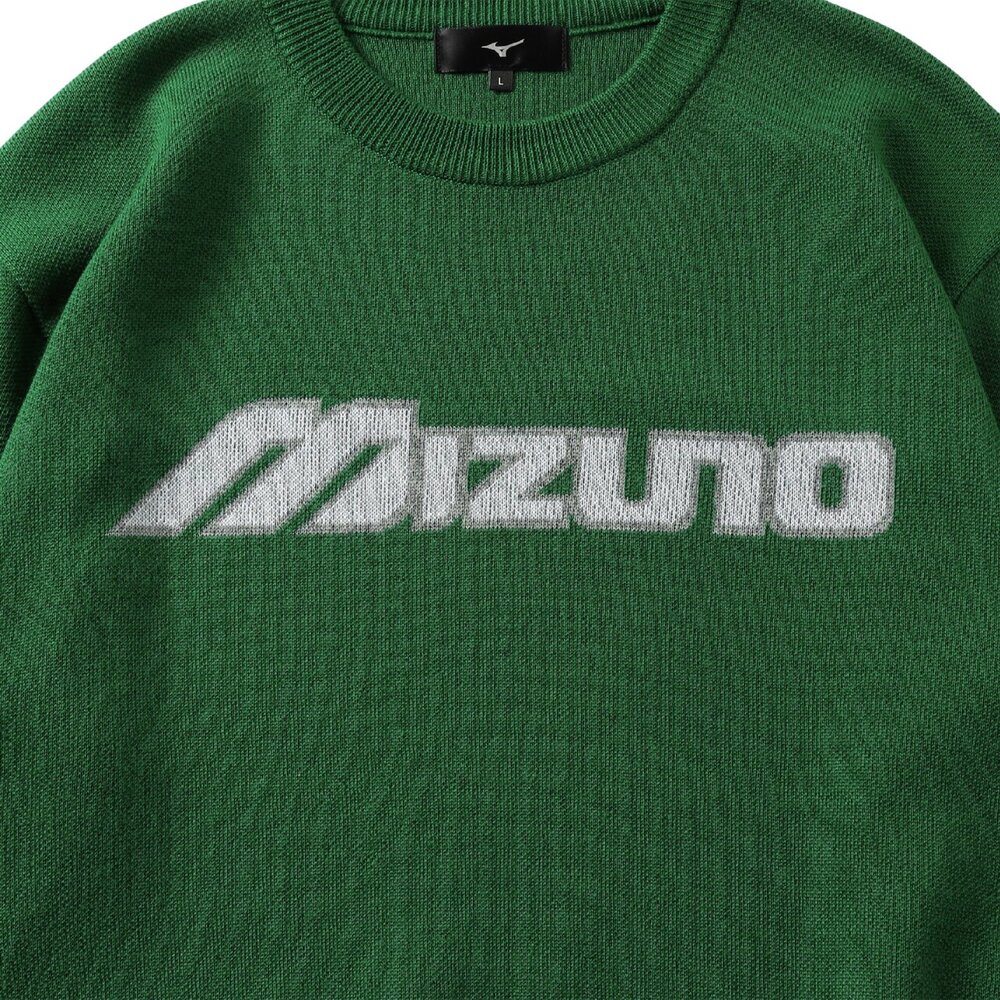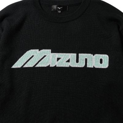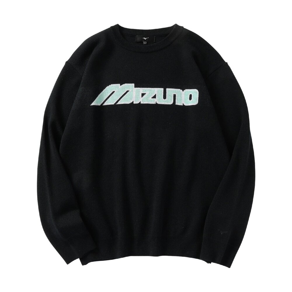 ミズノブランドのシグネチャーアイテムとも言えるフロントの大きな“MIZUNO”ワードマークがアクセントのニットセーター。
