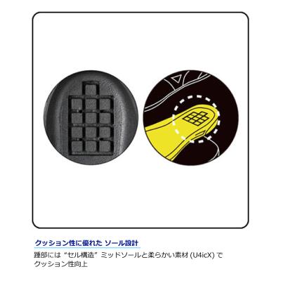 踵部には“セル構造”ミッドソールと柔らかい素材(U4icX)でクッション性向上