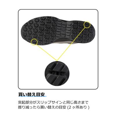 ■買い替え目安:突起部分がスリップサインと同じ高さまで擦り減ったら買い替えの目安(2ヶ所あり)