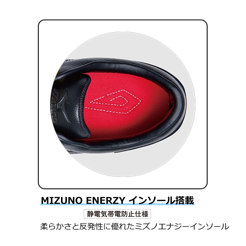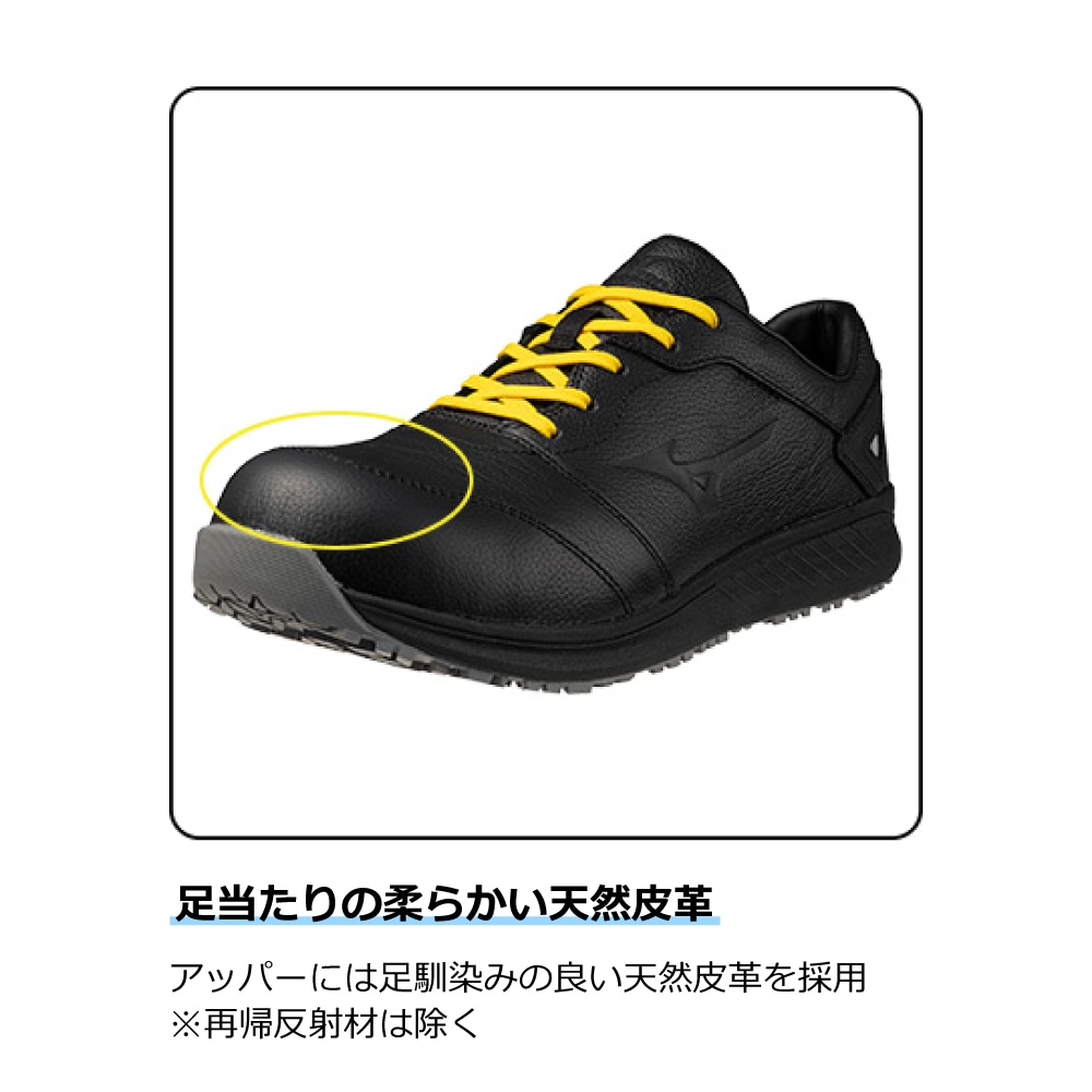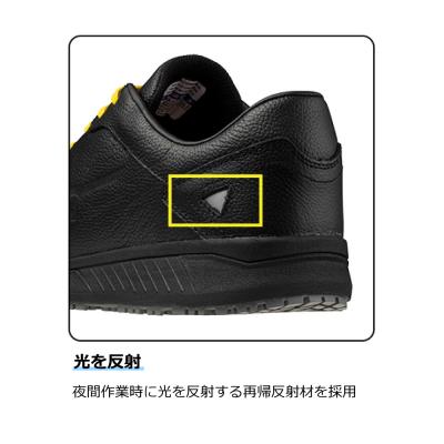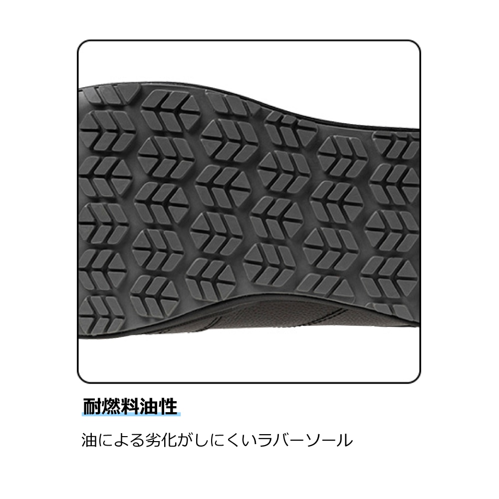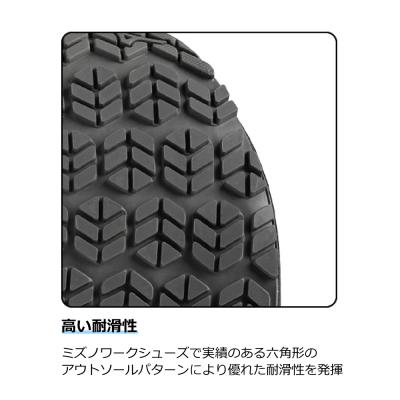 ミズノワークシューズで実績のある六角形のアウトソールパターンにより優れた耐滑性を発揮