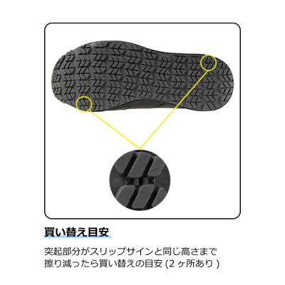 ■買い替え目安:突起部分がスリップサインと同じ高さまで擦り減ったら買い替えの目安(2ヶ所あり)