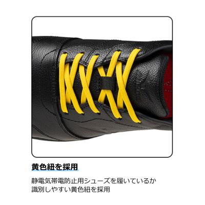 静電気帯電防止用シューズを履いているか識別しやすい黄色紐を採用