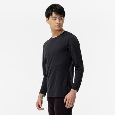 吸湿発熱素材「ブレスサーモ」は、人体から発生する水分を吸収して発熱効果をもたらす新しい保温メカニズムを実現させました。ブレスサーモの吸湿発熱した空気を繊維間に取りこみ保温する為、衣服内をドライで温かな状態にします。