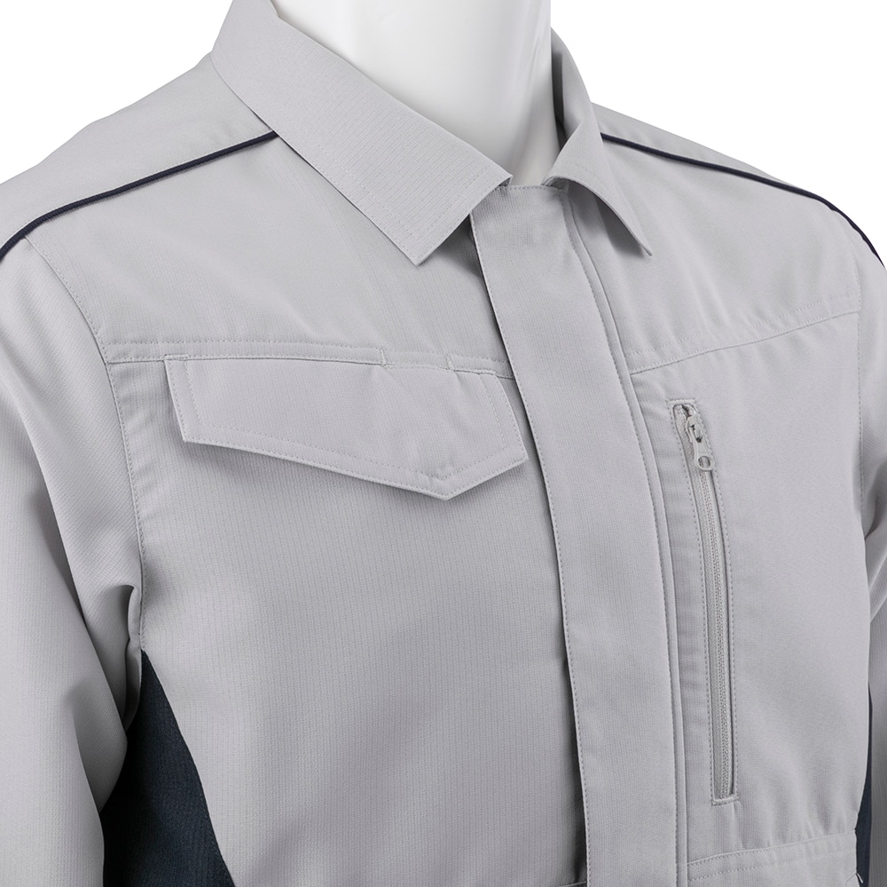 ■左胸/ファスナーポケット、右胸/ペンスリット入りフラップポケット