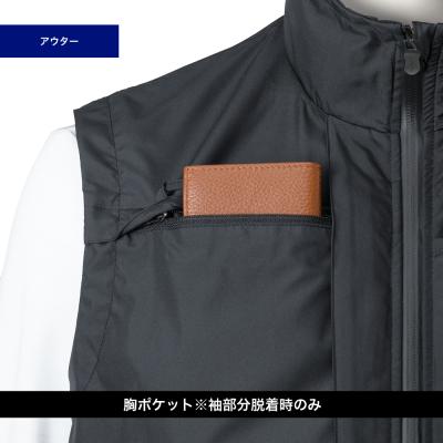 ■取り外し可能なアウター袖部分は、レインウエアに採用の防水透湿素材を使用
