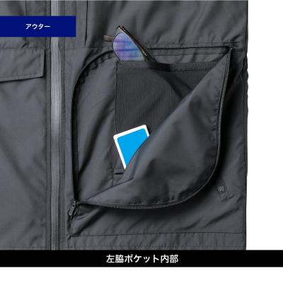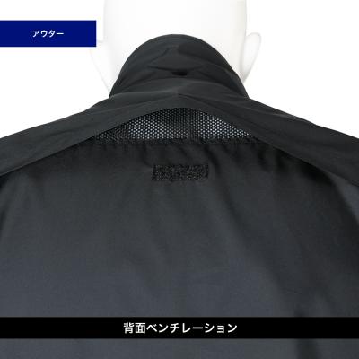 ■アウター身頃部分のフロントファスナーは止水ファスナーを使用