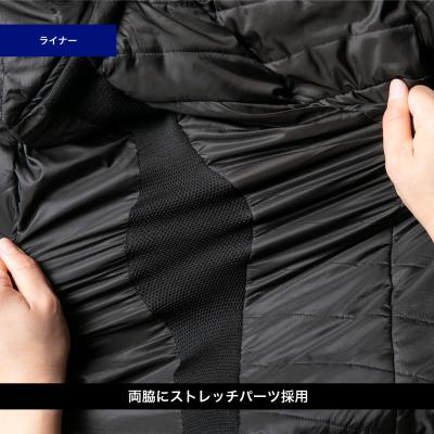 ■ライナーの脇にはストレッチパーツを使用し、中綿入りでも不快なつっぱり感を軽減
