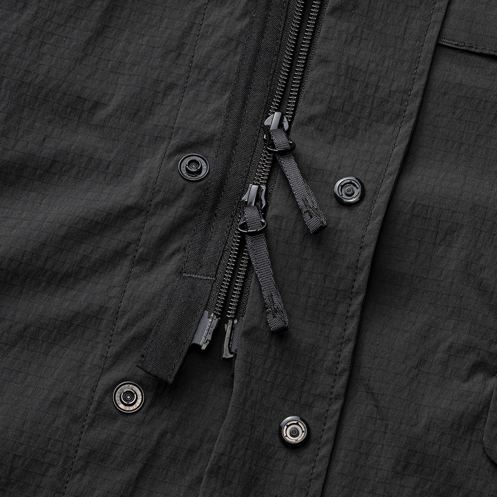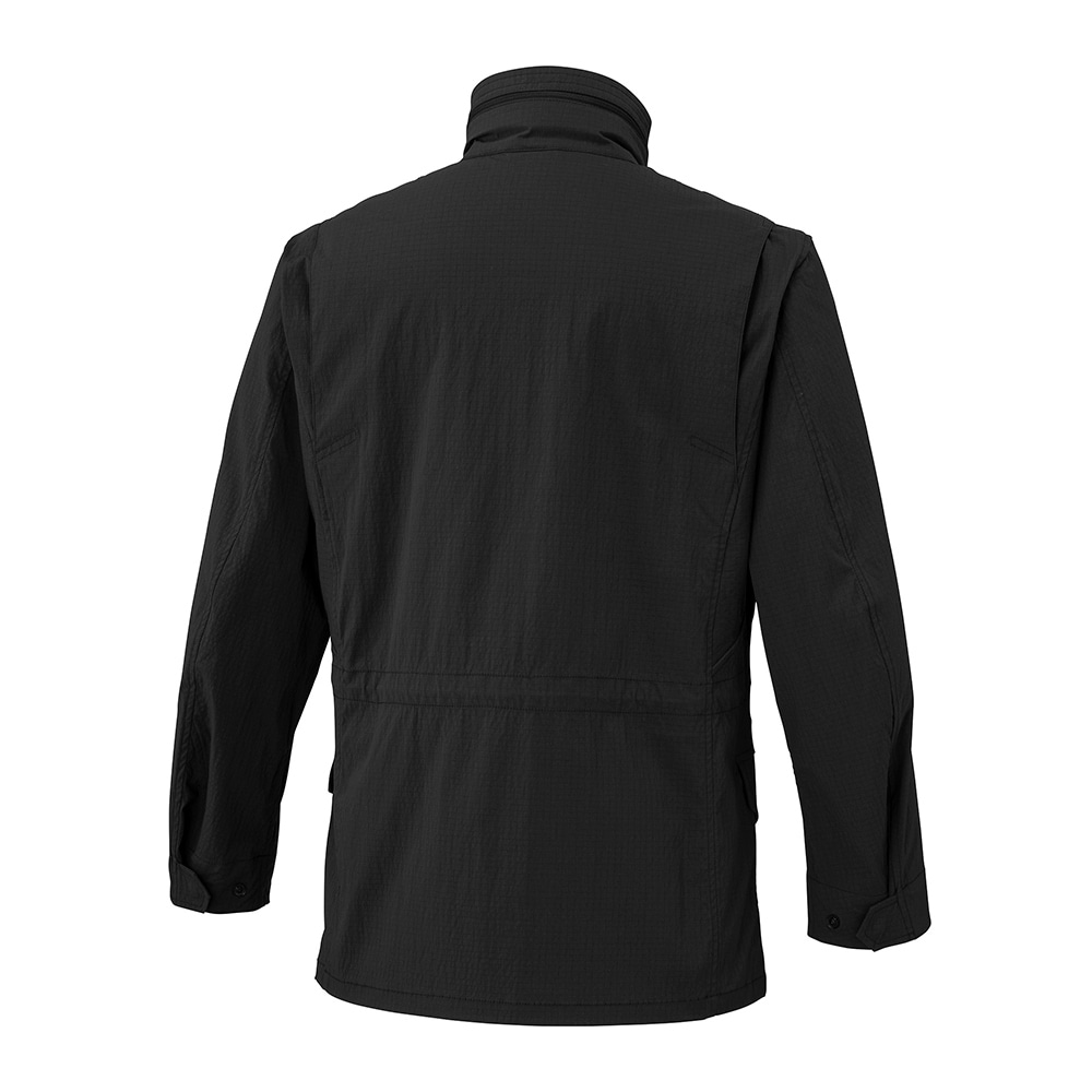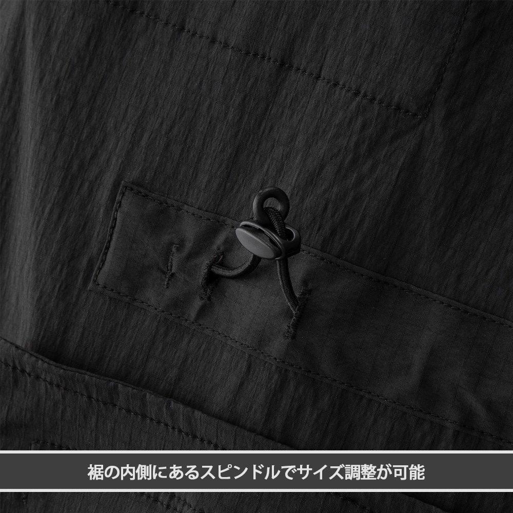 ■ウエスト部裏面のスピンドル、袖口のドットボタンによりサイズ調整が可能。