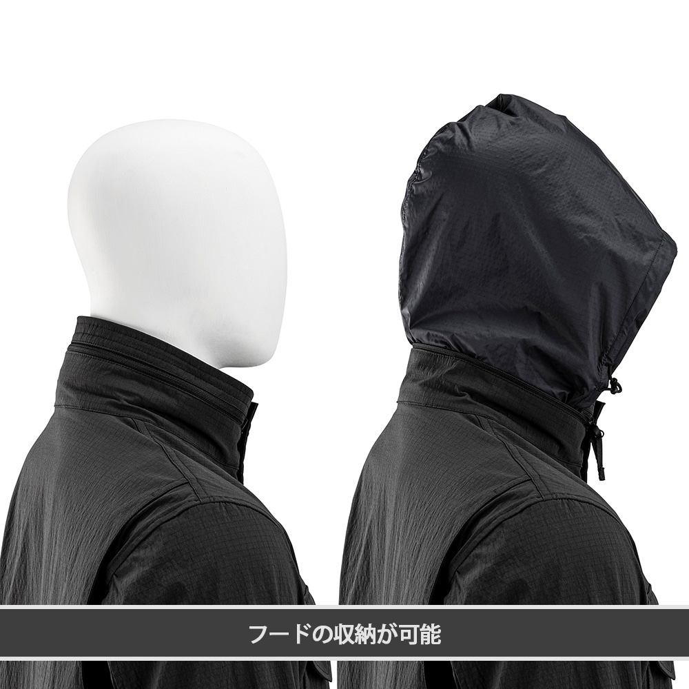 | 素材 | 本体:ナイロン94%、ポリウレタン6% フード:ナイロン100% |