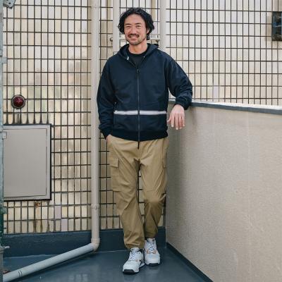 ■フロントファスナーは上下開きになっているので、腹部のストレスを軽減。