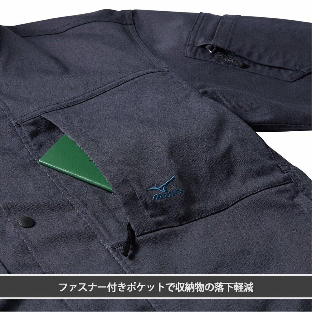 ■左袖のペン差しには鍵などの落としやすい小物を入れるファスナー付きポケットを配置し、収納性の高い設計に。