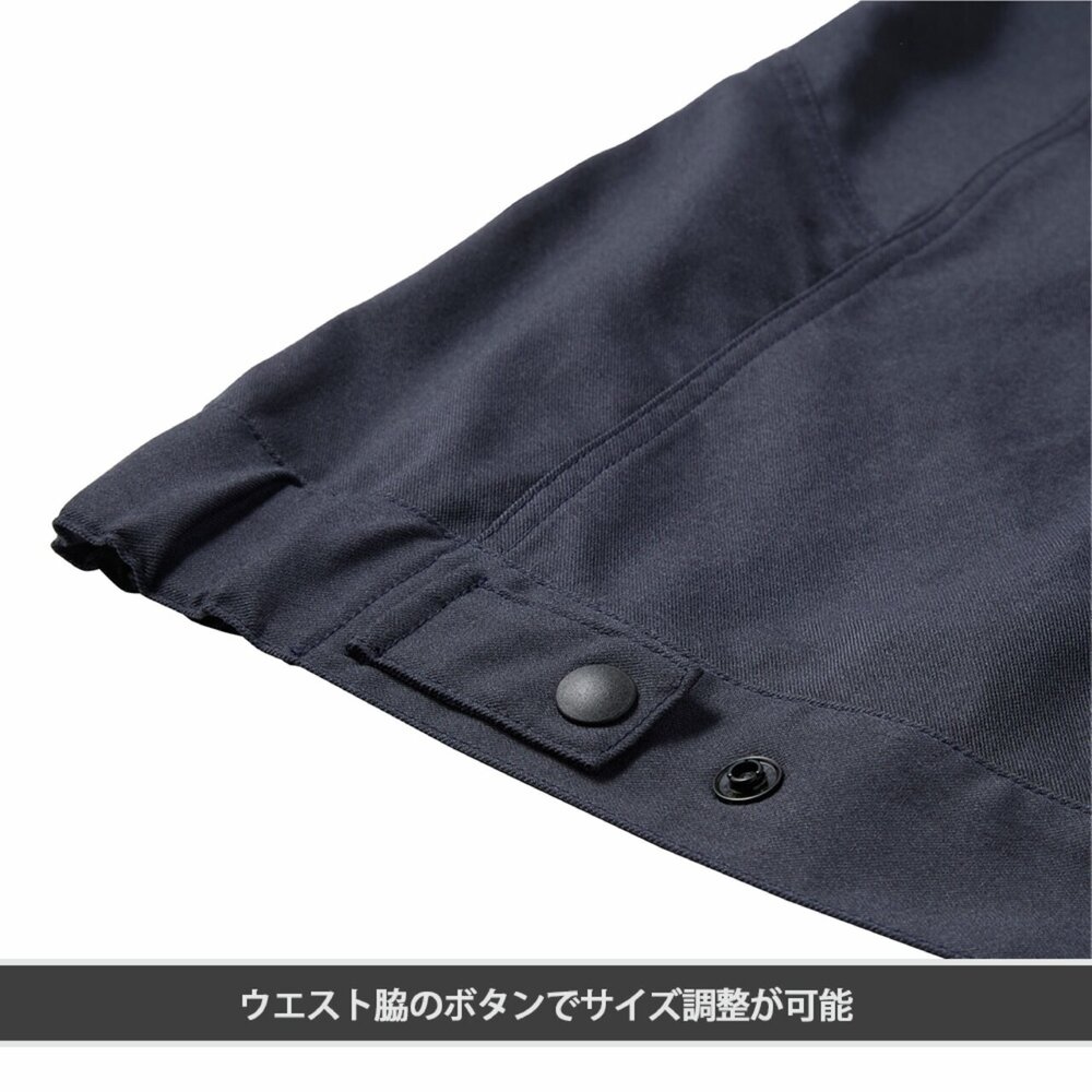 ■脇ゴム+ドットボタンアジャスターでウエスト周りのサイズ調整が可能。