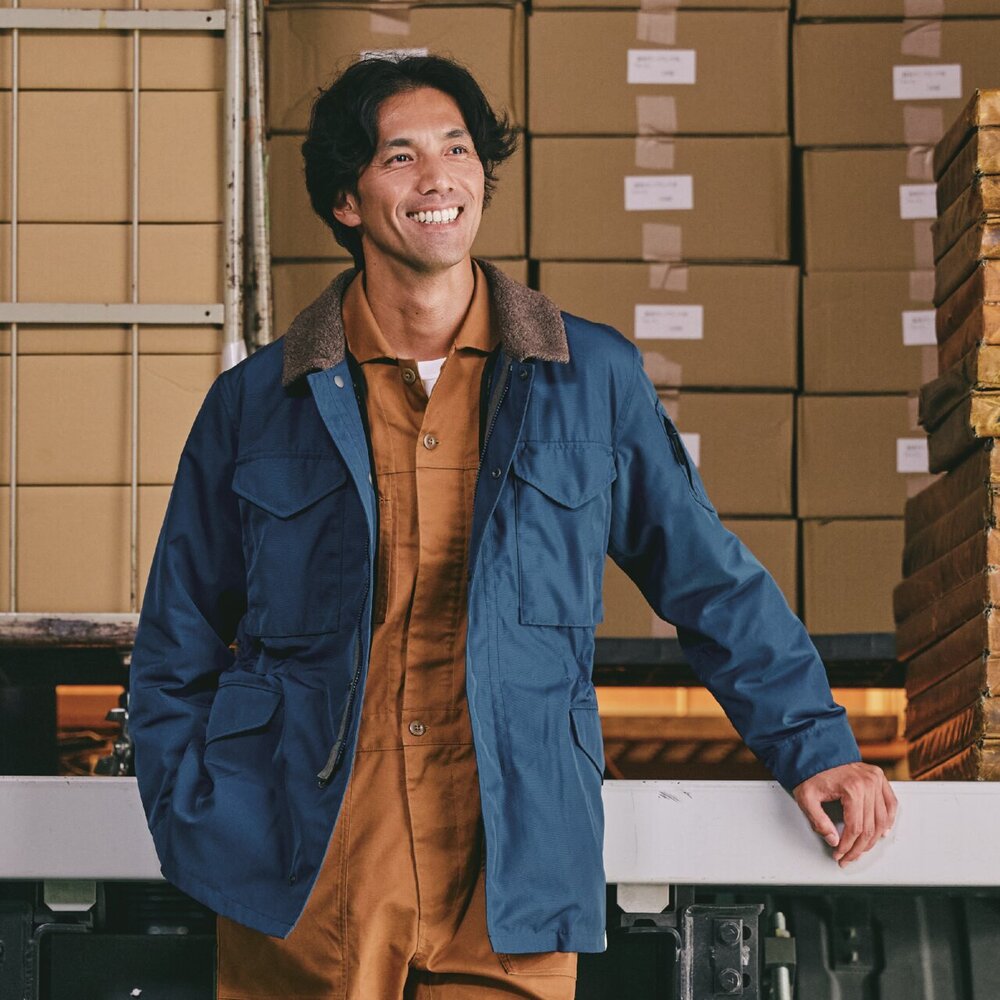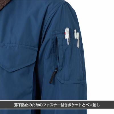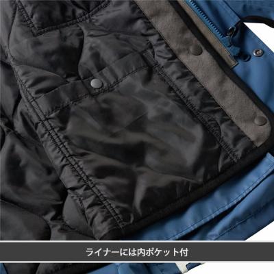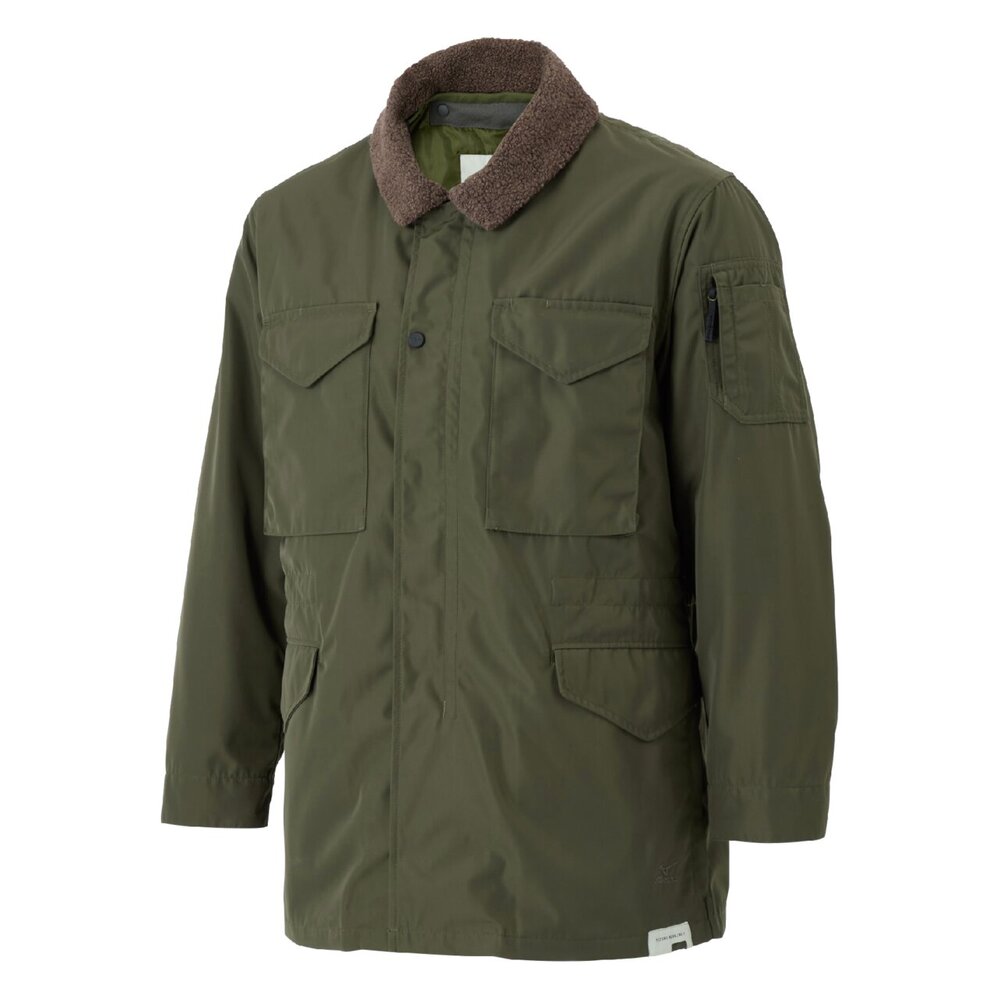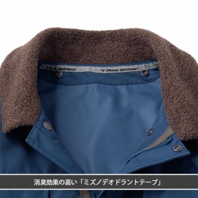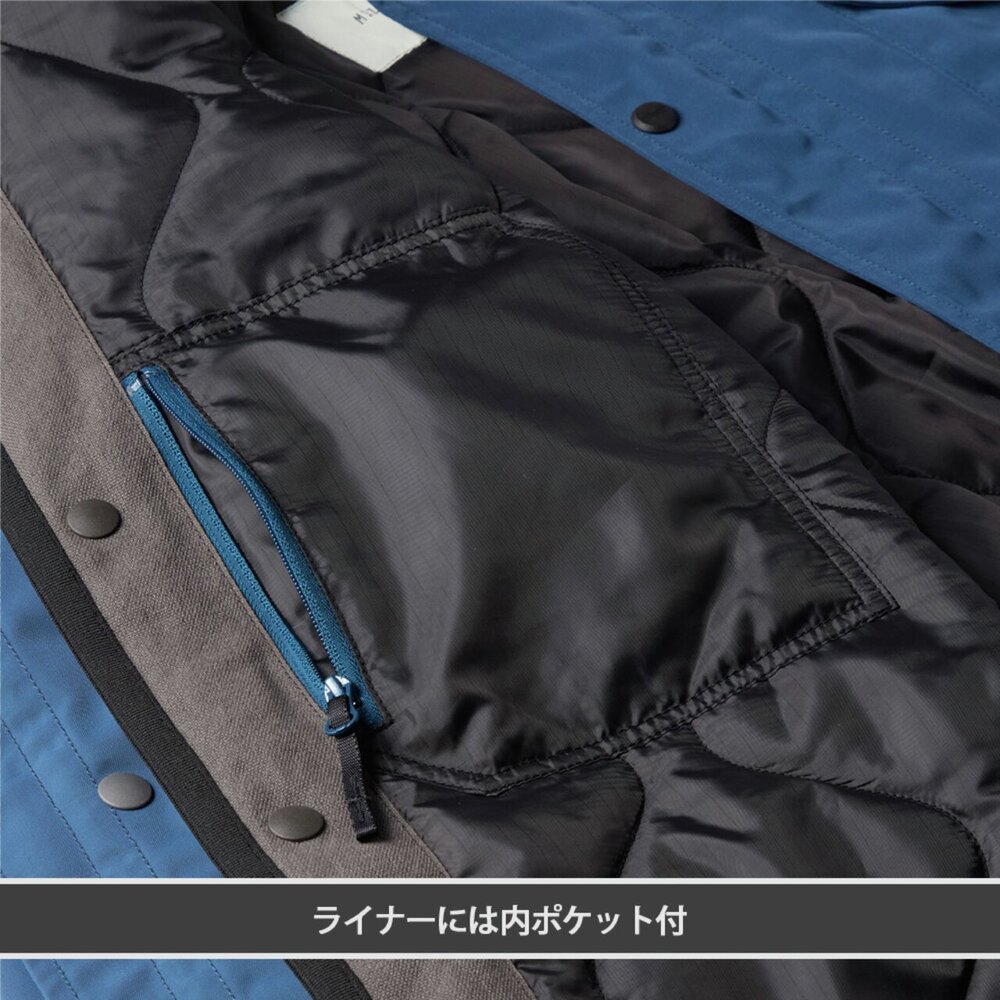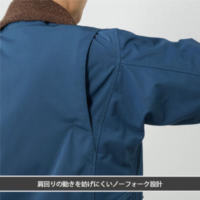 ■衿元にウール混のボアを使用し、着脱可能なブレスサーモライナーが付いた防寒ブルゾン。