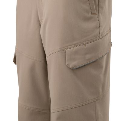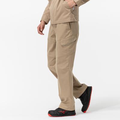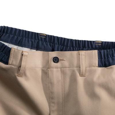 ポリエステル素材の洗濯耐久性をいかし、綿素材の風合いをプラスした綿混ストレッチ素材を使用したワークパンツ