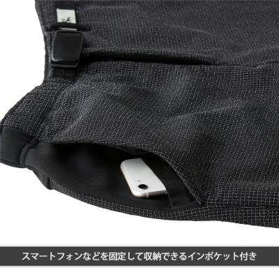 ■右腰ポケット内には、携帯が固定できる専用ポケット付。