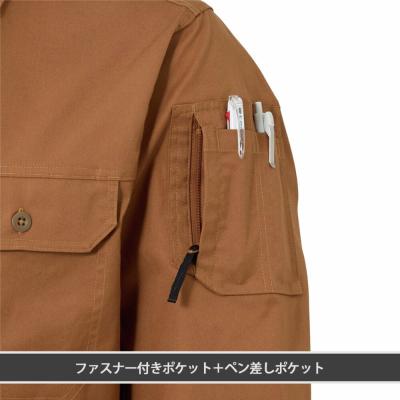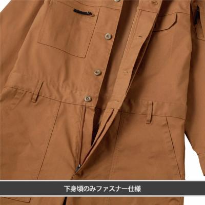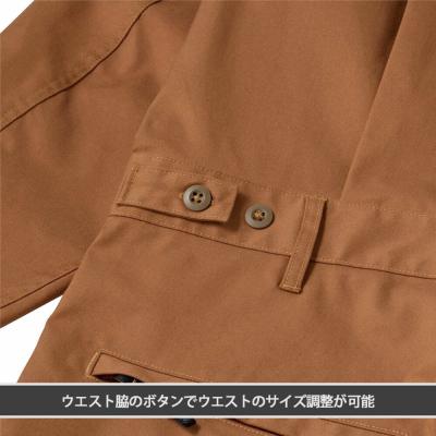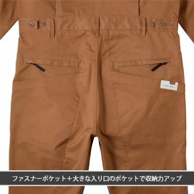 ■上半身のフロント開閉をボタンにし、ヒップには特徴的なポケットを配置したツナギ。