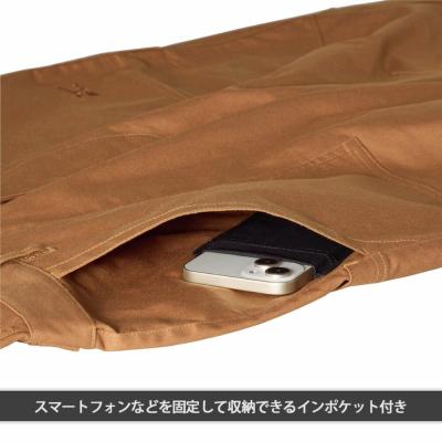 ■右腰ポケット内には、携帯を固定できる専用ポケット付。