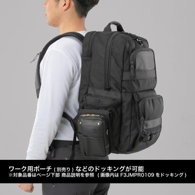 ■両サイド、正面部分にポーチや工具袋などを取り付け可能なバックル付きテープ