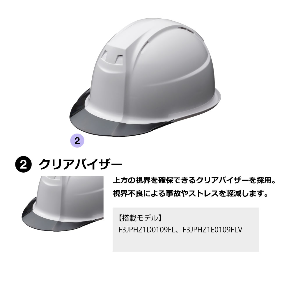 上方の視界を確保できるクリアバイザーを採用。視界不良による事故やストレスを軽減します。